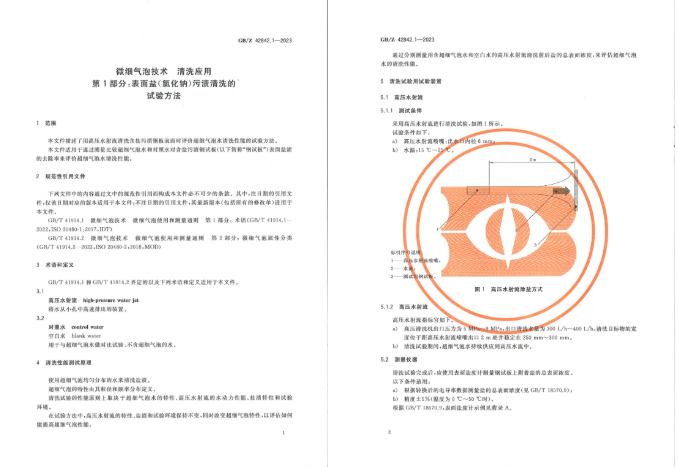 标准引领,技术先行。2023年,工源环境作为第一起草人制定的GB/Z42842.1 2023《微细气泡技术清洗应用第一部分:表面盐(氯化钠)污渍清洗的试验方法》国家标准也已于2023年8月6日正式发布,2024年3月1日实施。