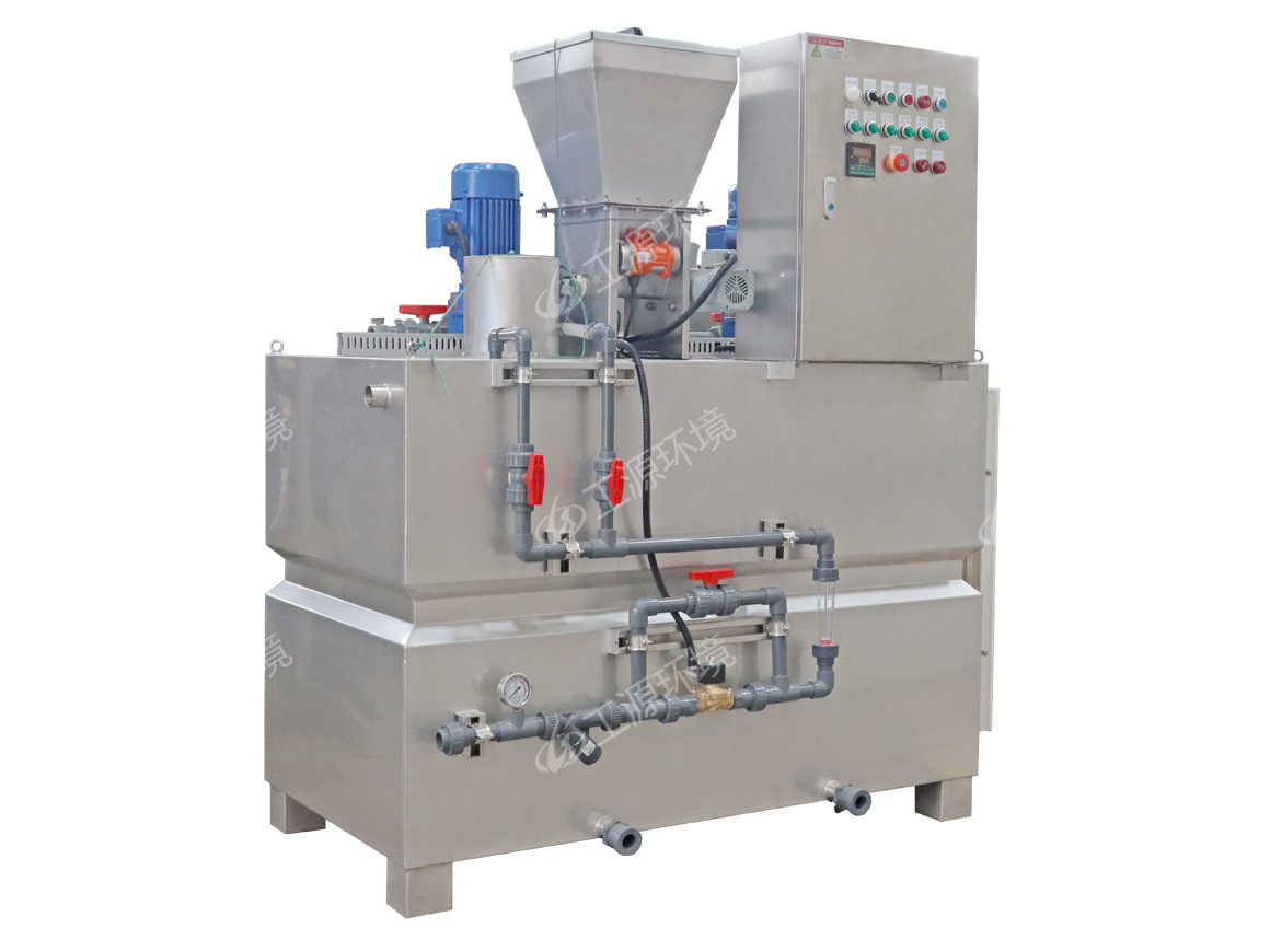 GPT型自动加药装置采用三槽一体结构,连续制备。主要由料仓、干投机、浸润装置、溶药槽、熟化槽、储药槽、搅拌系统、液位控制系统和电控装置组成。真空上料机、在线稀释系统和药剂投加系统为选配件。