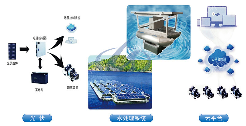 水处理系统:以光伏直流电力为动力,实现给水充氧循环流,水治理和移动功能。